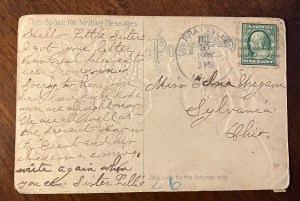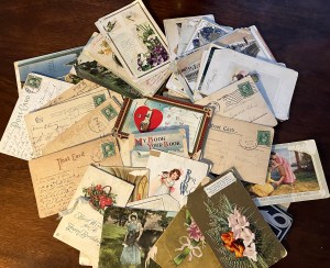 For the first time in a few years I opened up a box of old cards. Caring Connections in the form of handwritten postcards from long ago. In a small bag there is a stack of postcards I have managed to save over the years. Perhaps because they didn’t take much space, or they were so old and I didn’t want to just toss them, or that they had been sent to my Grandmother and contained some facts about her I did not know. Nostalgic, but more than that, they tell a story of a Caring Connection.