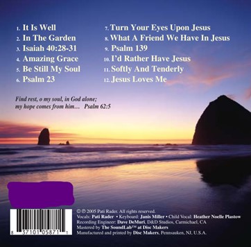 The original intention of the CD was to provide comfort and assurance through music and words to shut-ins and those facing the end of their earthly journey. We wanted to bring the message of hope in a simplistic and easy to listen format that would sound as if we were right there with the listener. What we discovered was that in addition to shut-ins, able bodied travelers on their own journeys found encouragement listening to the CD. And so we have continued to make it available beyond what we had intended, but clearly what God had planned.